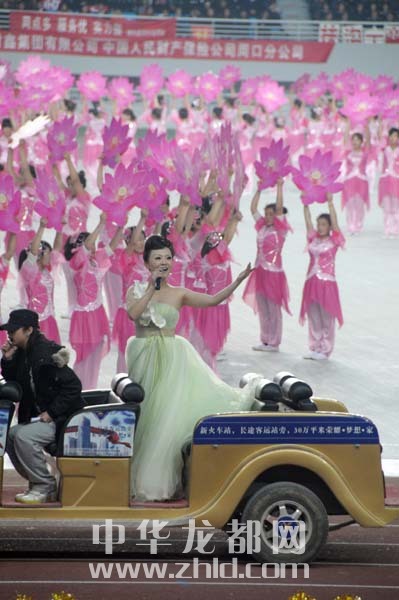 17時(shí)20分許,天色明顯暗了下來(lái),可觀眾的熱情依然不減,文體演出進(jìn)入了以“超越夢(mèng)想”為主題的第四章。這個(gè)章節(jié),因?yàn)橛辛恕熬猎缕孥E”的助陣,演出現(xiàn)場(chǎng)更加激情四射。
