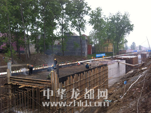 ????記者觀察到,周項(xiàng)路南半幅道路正在緊張施工,工地周邊已用彩鋼板圍了起來(lái)。昨日早上雖然下著小雨,仍有10多名工人正在進(jìn)行箱涵的鋼筋焊接。據(jù)介紹,該箱涵是一段全長(zhǎng)970米的明渠改造工程,呈大四方體狀,全部由鋼筋混凝土整體澆灌而成。據(jù)市住建局相關(guān)負(fù)責(zé)人介紹,其功能是將交通大道干渠里收集來(lái)的雨水,經(jīng)箱涵流至運(yùn)糧河內(nèi)。由于道路在原有基礎(chǔ)上擴(kuò)寬至50米,因此明渠必須改建成暗渠。箱涵工程結(jié)束后,緊接其后的是修建污水管網(wǎng)和道路沿線配套的水、電等市政基礎(chǔ)設(shè)施施工。