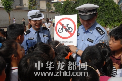 周口交警進(jìn)校園 “六一”送“平安禮”