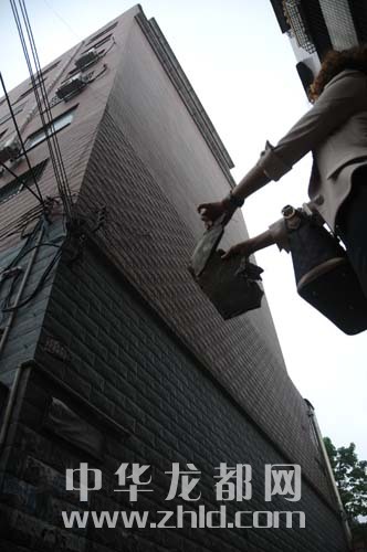????昨日,記者來到周口市區(qū)七一路與工農(nóng)路交叉口西側(cè)的周口市工信局辦公樓。記者注意到,這是一棟臨街樓,其中一樓、二樓是一家正在營業(yè)的藥店。樓東面是一條胡同,穿過胡同是周口市工信局家屬院。這條胡同是居民們進出的唯一通道,脫落水泥塊的地方就是胡同的正上方的樓頂。記者看到,接近樓頂?shù)耐鈮ι?,鑲嵌著兩行水泥制作的裝飾物。脫落的水泥塊就來自這種裝飾物。