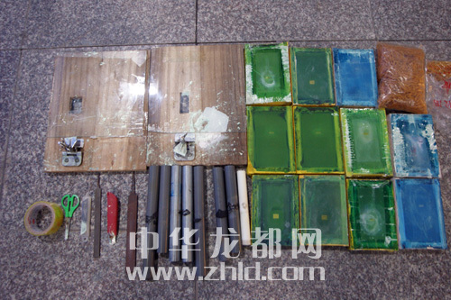 ????同年11月5日,在獲知許某、韓某夫婦再次從廣東購得假幣,并已伙同孟某完成防偽加工工序的準確信息后,為避免假幣流入市場,周口公安機關(guān)經(jīng)偵部門“收網(wǎng)”。11月6日,市公安局犯罪偵查支隊經(jīng)偵三個大隊全體民警在文昌分局許灣中隊、沈丘縣公安局經(jīng)偵大隊的協(xié)同配合下,直撲犯罪窩點。于當天下午2時許,在沈丘縣抓獲犯罪嫌疑人韓某、孟某及其他涉案人員,并在孟某家中當場繳獲假幣數(shù)百萬元(圖一),假人民幣加工模具12套(圖二)。