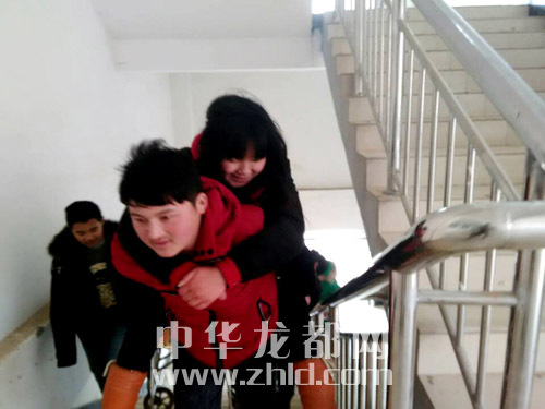 ????雷偉每隔幾天就背一次孔雪珂,這已成了他學校生活的一部分?!俺宋冶晨籽╃嫔舷聵峭?,我們班其他26個男生也都背過她。我作為班長,理應多做一些?!卑芽籽╃姘踩偷浇淌?,雷偉有點不好意思地說,“第一次背她,我有點兒害羞,但如今已經習慣了?!?/p>