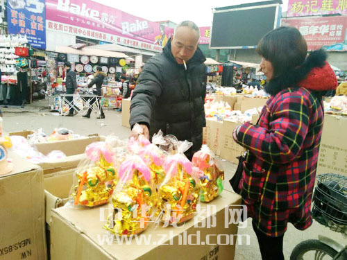 當(dāng)日12時(shí)30分許,記者在周口荷花市場看到,各式各樣的花燈擺在道路兩側(cè),不僅有各種卡通動(dòng)物造型的塑料花燈,還有紙質(zhì)、絨布、綢布等材質(zhì)的花燈。2015年是農(nóng)歷乙未年,“金羊賀歲”、“羊羊得意”、“喜羊羊”等卡通羊造型的花燈尤為熱銷,售價(jià)一般在15元至30元。