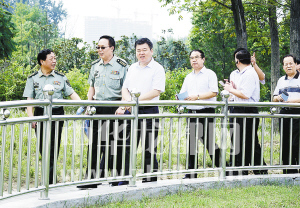 ????市委書記、市人大常委會(huì)主任、周口軍分區(qū)黨委第一書記徐光帶領(lǐng)市委、市人大、市政府、市政協(xié)和周口軍分區(qū)領(lǐng)導(dǎo)同志到全國八大國防教育主題公園之一——周口國防教育園參觀指導(dǎo)。(記者 沈湛 攝)