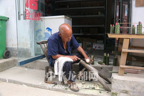 寫滿滄桑的臉上,全神貫注,有力的雙手,在竹筒上一刀刀刻著對(duì)生活的美好追求!