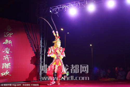 ????還記得小時(shí)候我們搬著小板凳到村頭看電影或聽?wèi)騿??如今啊,農(nóng)民不再看電影聽?wèi)蛄?,而是開始在村頭辦“村晚”啦。2月2日晚上,太康縣老冢鎮(zhèn)孟莊行政村舉辦了一臺(tái)猴年“村晚”。演出現(xiàn)場震天的鼓點(diǎn)和著嗩吶的節(jié)拍,熱鬧非凡。英俊的公子、羞怯的大家閨秀,神采奕奕的大爺大媽,一個(gè)個(gè)生動(dòng)的角色,一段段幽默詼諧的節(jié)目,吸引著附近數(shù)十個(gè)村的兩萬余名村民在此觀看。