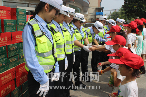 ????當(dāng)前,創(chuàng)建省級文明城市工作正在周口中心城區(qū)廣泛開展,整個城市越來越干凈美麗,城市文明程度不斷提升。8月15日上午,在八一大道和七一路交叉口,團市委組織數(shù)十名志愿者和孩子協(xié)助交警維護交通秩序??吹浇痪⒁虩岬煤沽鳑驯?,孩子們紛紛將礦泉水送到她們手中。晚報記者 王凱 攝
