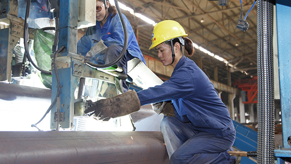 “雖然高溫使我們像‘蒸桑拿’一樣全身汗?jié)瘢珵榱吮WC焊接質(zhì)量,我們必須堅持下來,看著焊接好的工程,流的汗,值了!”王中美說道。
