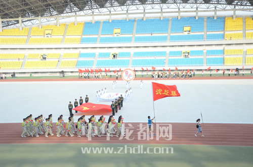 ????9月19日16時許,周口晚報記者在市三運會開幕式整場彩排現(xiàn)場看到,伴隨著主持人宣布彩排開始,國旗、會旗和會徽方陣率先入場,緊隨其后的是來自各縣市區(qū)的97支代表隊方陣(小圖)。當入場式結(jié)束所有參與人員離場后,市三運會開幕式文藝演出拉開帷幕。據(jù)了解,文藝演出共分《印象周口》《荷韻悠長》《難以忘槐》《崛起之路》《揚帆遠航》五大篇章?!拔覀儏⒀莸挠形椠?zhí)珮O、龍旗、古箏演奏等6個節(jié)目。”周口文昌中學相關(guān)負責人趙志偉說,他們學校共有540人參加市三運會開幕式文藝演出,表演的節(jié)目穿插在五大篇章之中。周口晚報記者了解到,除周口文昌中學外,參加開幕式文藝演出的還有周口幼兒師范學院、周口職業(yè)技術(shù)學院衛(wèi)生學院、周口市自行車協(xié)會等多家單位。
