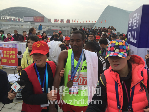 ????經(jīng)過(guò)激烈角逐,21歲的小伙子李鴻浩以1小時(shí)12分56秒奪得了男子半程馬拉松第一名,張妮以1小時(shí)24分57秒奪得女子組冠軍。全程馬拉松男、女冠軍分別被來(lái)自埃塞爾比亞的兩位選手Bekele和Meskerm·Gutu·Tola以2小時(shí)16分40秒和2小時(shí)44分43秒奪得。