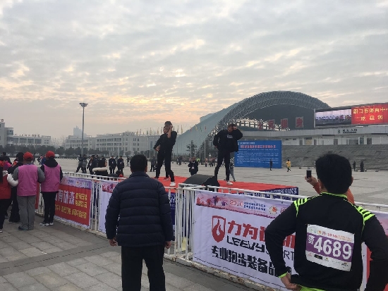 ????在舞臺上跳舞的女孩都是此次服務(wù)馬拉松比賽的志愿者。“我們都是周口幼師的學(xué)生,20個人分成三組輪流在這三個舞臺上跳舞。”舞者王香琴說,“開跑前,我們的舞蹈可以讓參賽選手心情愉悅。雖然在臺上跳得很累,但是我很開心也很激動?!?/p>