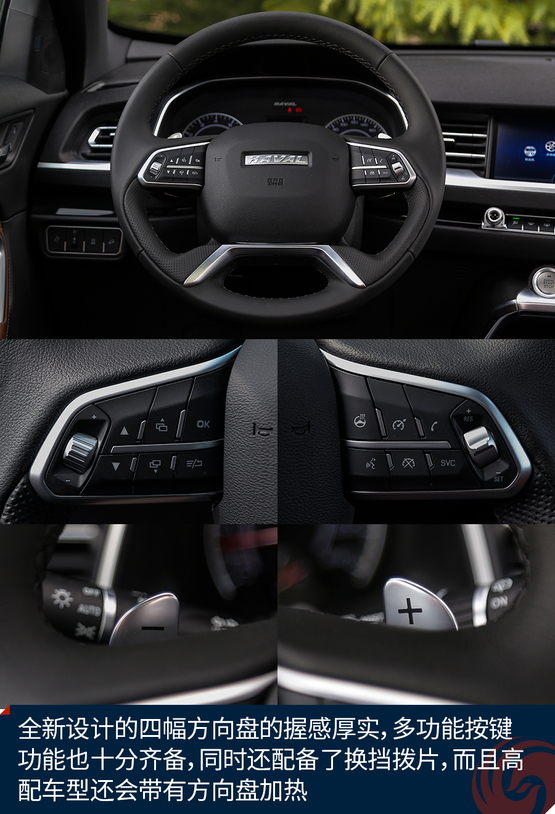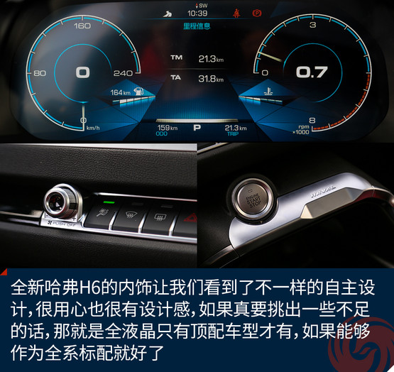 一切以駕駛員為中心的設(shè)計(jì)理念值得肯定,微微朝向駕駛員的中控設(shè)計(jì),全新的電子換擋桿以及多媒體控制旋鈕都給我留下了很深的印象,當(dāng)然了全景天窗進(jìn)一步增加了車內(nèi)空間的開揚(yáng)感,全新設(shè)計(jì)的四幅方向盤的握感厚實(shí),多功能按鍵功能也十分齊備??傊?,全新哈弗H6的內(nèi)飾讓我們看到了不一樣的自主設(shè)計(jì),很用心也很有設(shè)計(jì)感,沒有了雜亂無章,相反,這樣的設(shè)計(jì)會(huì)讓人很愿意和汽車獨(dú)處,如果真要挑出一些不足的話,那就是全液晶只有頂配車型才有,如果能夠作為全系標(biāo)配就好了。