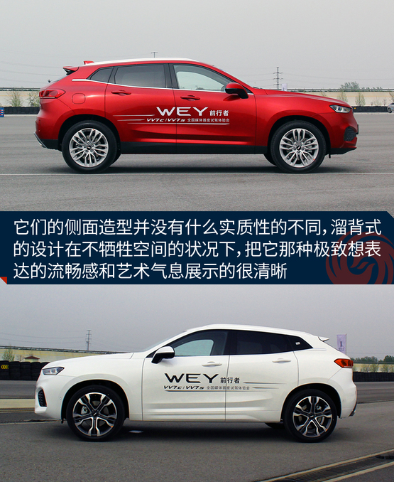 VV7C(文中簡稱普通型)和VV70S(文中簡稱運動型)的外觀采用了溜背流線的設(shè)計風格,俏麗的模樣賦予了它極高辨識度,用驚艷、夠國際化還形容一點都不過!就目前來看,自主品牌中并無這種柔美流線設(shè)計風格的車型;至于它的車身尺寸,長寬高4749×1931×1655毫米,軸距2950毫米。而普通版和運動版車型的區(qū)別,主要是外觀設(shè)計方面,包括中網(wǎng)格柵、前保險杠、輪圈以及排氣造型都有差異。