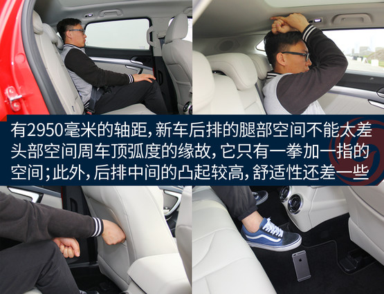 體驗者身高175厘米,前排座椅降到最低的時候頭部還有比較充足的余量,完全不會感覺到壓抑;不過后排頭部就不太行了,頭部距離車頂非常接近,要是身高再高一些的乘客坐進后排,已經(jīng)基本上快頂?shù)筋^了。儲物空間中規(guī)中矩,基本上沒有太多讓人驚喜的地方。扶手箱的空間不小,高度也合適,可以放些雜物。