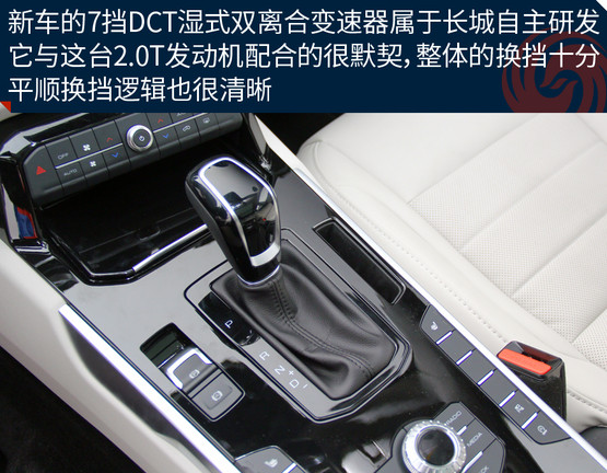 由于渦輪介入的時間稍晚一些,起步時不會讓你感覺特別的輕快,但也不會差到讓你無法接受,只要保持平常心就好;當這臺2.0升的渦輪增壓直噴發(fā)動機真的卯足了勁發(fā)力之后,360牛米的最大扭矩完全不是鬧著玩的,后背感覺有人在猛使勁的把你向前推。長城自主研發(fā)的7擋濕式雙離合變速器是新車的一大亮點,日常駕駛的過程中升降檔都有著不錯的平順性,不過起步初期離合器結(jié)合的速度還是稍微有一些慢,急加速時變速箱的反應也不夠靈敏,這在一定程度上拖累了整體的動力表現(xiàn)。