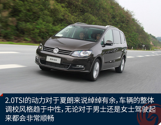 在駕駛方面,大眾汽車一貫的沉穩(wěn)風(fēng)格在夏朗上得到進(jìn)一步升華,畢竟這是一款注重家用的MPV車型。2.0TSI的動(dòng)力對(duì)于夏朗來(lái)說(shuō)綽綽有余,車輛的整體調(diào)校風(fēng)格趨于中性,這也是大眾品牌所崇尚的風(fēng)格,所以夏朗這款車無(wú)論對(duì)于男士還是女士駕駛起來(lái)都會(huì)非常順暢,對(duì)于一個(gè)家庭來(lái)說(shuō)不同的駕駛者都會(huì)對(duì)夏朗的駕駛感受表示滿意的。