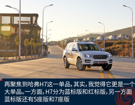 再聚焦到哈弗H7這一單品,其實(shí),我覺得它更是一個(gè)大單品。一方面,H7分為藍(lán)標(biāo)版和紅標(biāo)版,另一方面,藍(lán)標(biāo)版還有5座版和7座版。關(guān)于定位,紅標(biāo)5座,大氣、豪華;藍(lán)標(biāo)5座,時(shí)尚、運(yùn)動(dòng);藍(lán)標(biāo)7座,沉穩(wěn)、硬朗。據(jù)悉,未來(lái)不排除推出紅標(biāo)7座版車型,具體需要根據(jù)市場(chǎng)反饋來(lái)決定。