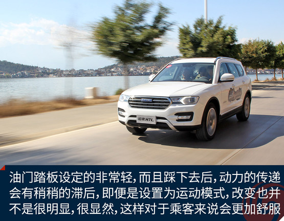 既然是7座車型,藍(lán)標(biāo)H7L在調(diào)校方面也更加注重舒適,這一點(diǎn)從油門踏板可以很明顯的感覺到。油門踏板設(shè)定的非常輕,而且踩下去后,動(dòng)力的傳遞會(huì)有稍稍的滯后,即便是設(shè)置為運(yùn)動(dòng)模式,改變也并不是很明顯,很顯然,這樣對(duì)于乘客來(lái)說(shuō)會(huì)更加舒服。相比于油門踏板,剎車踏板則力度適中且比較線性。