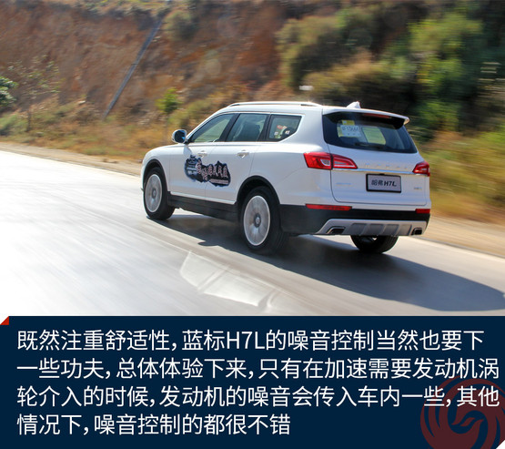 既然注重舒適性,藍(lán)標(biāo)H7L的噪音控制當(dāng)然也要下一些功夫,總體體驗(yàn)下來(lái),只有在加速需要發(fā)動(dòng)機(jī)渦輪介入的時(shí)候,發(fā)動(dòng)機(jī)的噪音會(huì)傳入車內(nèi)一些,其他情況下,噪音控制的都很不錯(cuò)。