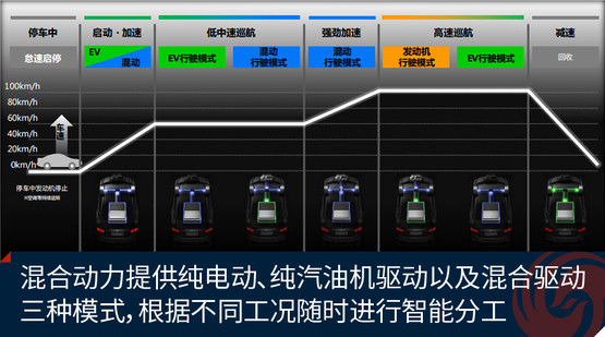 只有當車速高于65公里/時且油門開度合適時,這套動力系統(tǒng)才會有可能讓發(fā)動機單獨驅動車輪,但此時其還有一部分工作是為電動機充電。而在此時,如果車輛向前的驅動力是依靠發(fā)動機來輸出的話,那么其電動機將不會為車輛提供動力。換句話說,也就是意味著思鉑?;靹拥倪@套i-MMD系統(tǒng)雖然在車上搭載著兩個動力源,但是平時在城區(qū)行駛,它在驅動車輛前行時更多情況下會使用到的有且只有一個。