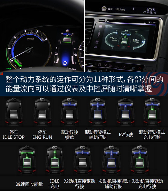 儀表也需要重新設計,左側的轉速表變成了動力顯示表。不過這跟雷克薩斯采用的液晶顯示方式不同,實體儀表只能固定在動力顯示的樣子,愛駕駛的人習慣看的轉速表就沒法兼得了。此外,儀表液晶屏和中控大屏都提供了能流量顯示功能,方便駕駛者隨時了解車輛能量的流動情況,也是個突顯逼格的利器。