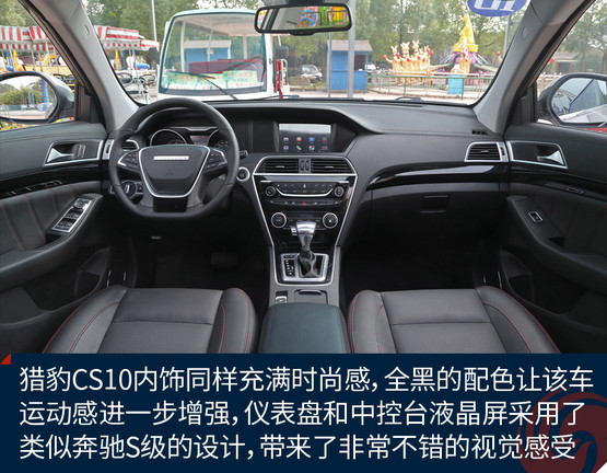 獵豹CS10內(nèi)飾同樣充滿時尚感,全黑的配色讓CS10的運(yùn)動感進(jìn)一步增強(qiáng),儀表盤和中控臺液晶屏采用了類似奔馳S級車型的貫通式設(shè)計,帶來了非常不錯的視覺感受。用料方面,中控臺上方面板為搪塑工藝,手感較軟,并且還進(jìn)行了仿縫線處理,讓整個內(nèi)飾看起來很有質(zhì)感。