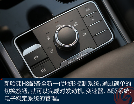 ????????四驅(qū)系統(tǒng)也是新哈弗H8的亮點(diǎn),搭載全新一代全地形控制系統(tǒng),可使駕駛者簡單的旋轉(zhuǎn)旋鈕,切換駕駛模式,這套系統(tǒng)集成了7大不同的駕駛模式。讓駕駛者可以輕松面對各種復(fù)雜的路況,這套系統(tǒng)的目的就是把復(fù)雜的操作簡單化。