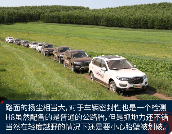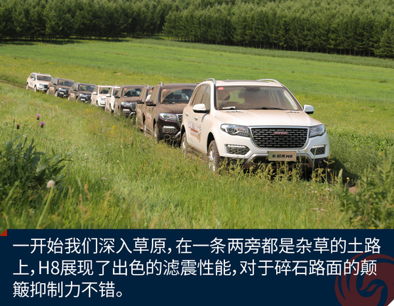 ????????經(jīng)過一段輕度的草原穿越,這段路程主要是體驗(yàn)H8的通過性和濾震性能,好戲才剛剛開始,通過這段路程我已經(jīng)感受出了H8偏向城市型SUV的調(diào)教,底盤很穩(wěn)健,但是懸掛比較硬朗。