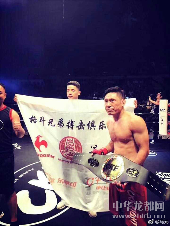 ??? 當(dāng)日,國(guó)內(nèi)格斗圈有名的姚紅剛、姚志奎兄弟第二次聯(lián)袂出陣CKF國(guó)際搏擊澳門站比賽,分別爭(zhēng)奪66公斤、61公斤洲際拳王金腰帶。比賽中,姚紅剛面對(duì)比自己年輕近十歲、高出自己10厘米的對(duì)手,表現(xiàn)沉著冷靜,開(kāi)局不久抓住機(jī)會(huì)成功抱倒對(duì)手,形成側(cè)控位,在對(duì)手起橋逃脫的空擋瞬間轉(zhuǎn)換為騎乘位,此后對(duì)手拼盡全力雙手搭扣防止姚紅剛的地面砸拳,但為時(shí)已晚,雨點(diǎn)般的拳頭落在了對(duì)手身上,對(duì)手被迫放棄比賽。第一回合姚紅剛tko對(duì)手獲勝,獲得個(gè)人第二條洲際綜合格斗金腰帶!