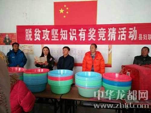 當(dāng)日上午,該縣婦聯(lián)主席范慧萍帶領(lǐng)婦聯(lián)干部冒雪來(lái)到老冢鎮(zhèn)新李村,簡(jiǎn)短的儀式過(guò)后,一場(chǎng)別開(kāi)生面的“扶貧知識(shí)有獎(jiǎng)競(jìng)猜活動(dòng)”開(kāi)始了,參與競(jìng)猜的195名建檔立卡戶激情高漲,現(xiàn)場(chǎng)掌聲不斷,場(chǎng)面異常活躍。競(jìng)猜活動(dòng)采取“一講二學(xué)三提問(wèn)”的方式,與群眾面對(duì)面互動(dòng),以有獎(jiǎng)問(wèn)答的形式宣傳扶貧政策,對(duì)能正確回答問(wèn)題或能說(shuō)出自己享受哪幾項(xiàng)優(yōu)惠政策的貧困戶,設(shè)一等獎(jiǎng)棉被一條、二等獎(jiǎng)宣傳臉盆一個(gè)、三等獎(jiǎng)圍裙一條。“在互動(dòng)中學(xué)到了知識(shí),這樣的宣傳形式俺百姓喜歡。”一位參與群眾感言說(shuō)。