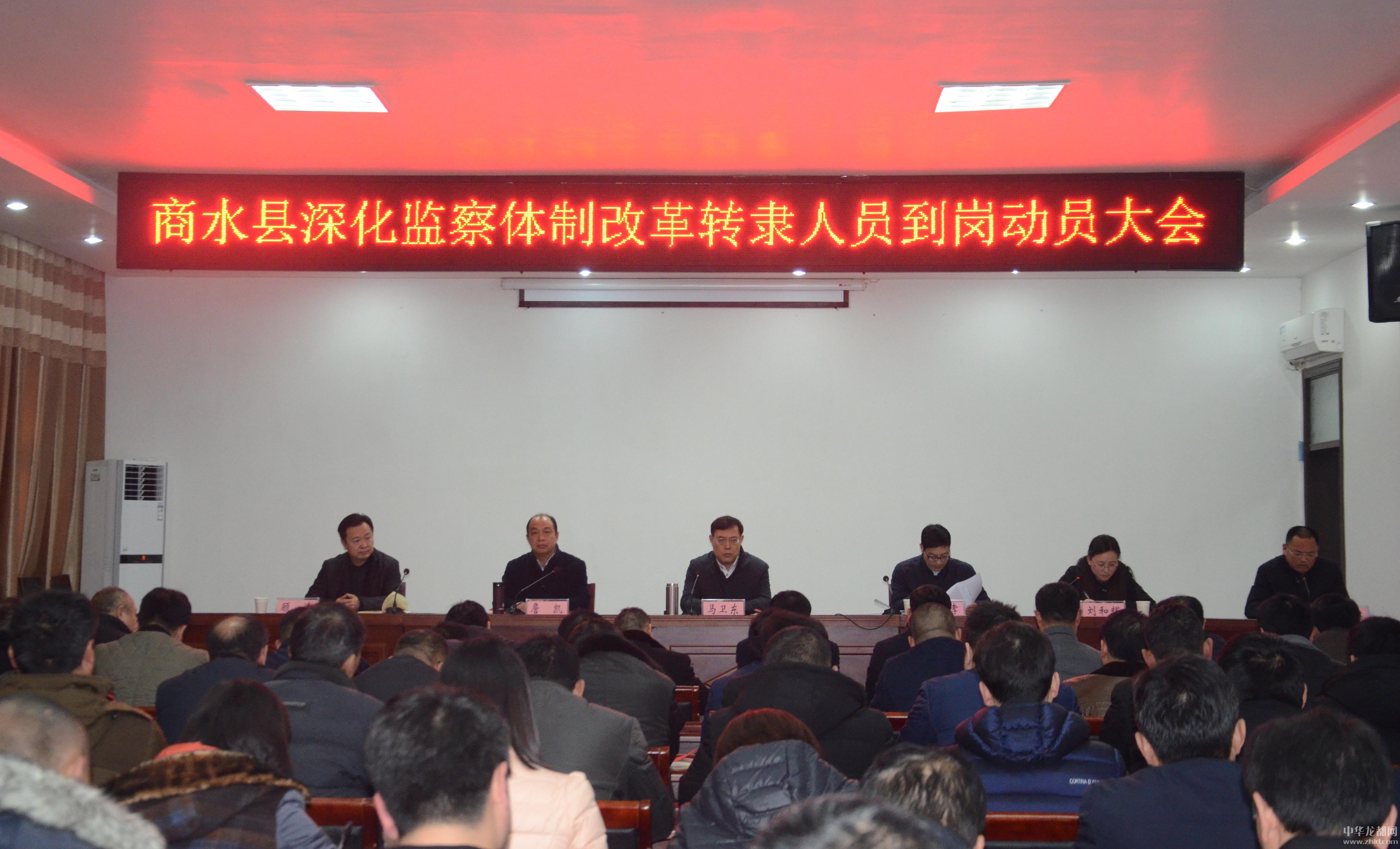 中華龍都訊 (周口報業(yè)全媒體記者 付永奇 通訊員 李前進(jìn))1月17日下午,商水縣深化監(jiān)察體制改革轉(zhuǎn)隸人員到崗動員大會在縣委五樓會議室召開。市紀(jì)委常委、市監(jiān)委委員朱良孝,縣委書記馬衛(wèi)東,縣委常委、紀(jì)委書記詹凱,縣委常委、組織部長劉和輝,縣檢察院檢察長顧濤;縣紀(jì)委監(jiān)察局機(jī)關(guān)、縣委巡察機(jī)構(gòu)全體人員以及縣檢察院全體轉(zhuǎn)隸人員參加了會議。