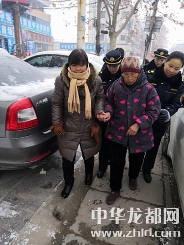 當日早上8點15分許,正在西華縣明德小學附近執(zhí)勤的縣城管局女子中隊的一名隊員突然發(fā)現一位老婆婆時而左右張望,時而喃喃自語。這名隊員立即上前詢問該名老人是否遇到困難時,還未等隊員說話,老人就張口說:“閨女,我不知道回家的路了?!苯涍^耐心溝通得知,老人當日從老家來縣城找閨女,但是忘了閨女家怎么走。老人只記得兒子的名字,其它一無所知。女子中隊的隊員們一邊安撫老人的情緒,一邊把老人的情況、照片與其兒子的姓名等信息發(fā)到西華縣城市管理工作群,并用對講機通知讓大家共同關注幫忙尋求線索。城市管理工作群的群員們及時把信息轉發(fā)到朋友圈,很快工作群里有了回復信息,有人認識老人的兒子,并提供了聯絡方式等信息。通過電話溝通,證實了高某正是老人的兒子。因為天氣寒冷,想著老人行動不便而且容易著涼,為盡快把老人送到家人身邊,女子中隊的隊員們隨即把老人扶上車送其回家。