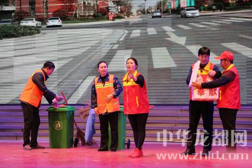 “一座小城多寧靜,千家萬戶睡夢中。環(huán)衛(wèi)工人勤勞動,爭創(chuàng)文明衛(wèi)生城?!惫?jié)目在歡快的音樂聲中幕啟。晨曦里,伴著幕后合唱,身著橙色工裝的環(huán)衛(wèi)工人在辛勤的勞動著。隨后,演員用藝術(shù)的形式再現(xiàn)了“環(huán)衛(wèi)工的辛苦”“志愿者早起送餐”“市民誤會”“委屈化解”“共獻(xiàn)愛心”等片段。“你的辱你的屈我有同感,我也曾為偏見淚濕衣衫。咱相識在太康衛(wèi)生隊,我也是一干幾十年。掏垃圾咱同下過一坑水,除雜草咱共用過一把掀。環(huán)衛(wèi)工的辛苦都嘗遍,為的是太康空氣鮮。環(huán)衛(wèi)工的重?fù)?dān)都挑遍,為的是太康天更藍(lán)?!泵鎸ξ?,王大嬸勸丈夫李大叔的一段勸唱,首次引來雷鳴般地掌聲。隨后,現(xiàn)場掌聲不斷,觀眾反應(yīng)強(qiáng)烈。“環(huán)衛(wèi)工不易,愛心早餐團(tuán)隊偉大,道情表演形式新鮮,這節(jié)目演出棒得很!”觀眾李老漢看后評價說。