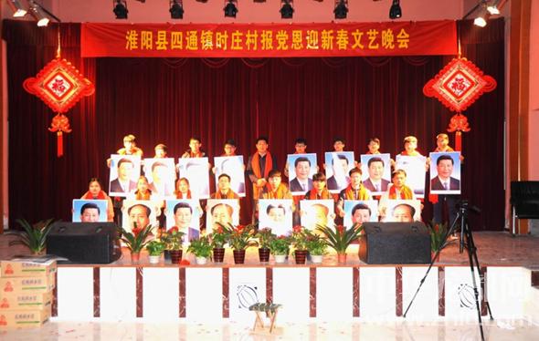 晚會在《沒有共產(chǎn)黨就沒有新中國》的大合唱中拉開了序幕,時莊村30多名大學生和全場群眾一起歡度佳節(jié),放聲歌唱。小品《我們的時書記》道出了時莊村父老鄉(xiāng)親對黨支部、對時興榮的欽佩和愛戴,表達了時莊村群眾在黨支部的帶領下,脫貧奔小康的信心和決心?;搓柨h和四通鎮(zhèn)的領導慰問了困難群眾并和群眾一起觀看了演出。