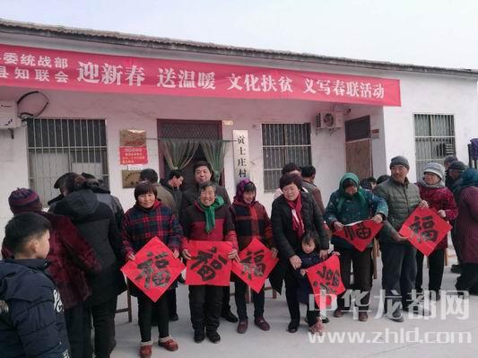 在村委院內(nèi),縣政協(xié)副主席、縣知聯(lián)會會長孫春花和書法家們一起,冒著嚴(yán)寒,為貧困群眾義務(wù)書寫春聯(lián)。在新春來臨之際,孫主席揮毫潑墨,為貧困群眾書寫新春的祝福語。她帶領(lǐng)大家給貧困群眾送上大寫的“?!弊?,表達(dá)對貧困群眾的美好祝愿和早日脫貧致富的期盼。