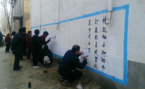 中華龍都網(wǎng)訊(周口報(bào)業(yè)全媒體記者 高洪馳 通訊員徐濤)為進(jìn)一步增強(qiáng)群眾脫貧致富的信心和決心,鄲城縣委、縣政府依托本縣“中國(guó)書法之鄉(xiāng)”的優(yōu)勢(shì),緊扣“脫貧致富奔小康”主題,在全縣23個(gè)鄉(xiāng)鎮(zhèn)(辦事處)1228個(gè)自然村組織舉辦脫貧攻堅(jiān)知識(shí)萬(wàn)人書畫文化下鄉(xiāng)行活動(dòng)。自活動(dòng)開展以來,近萬(wàn)人次的書畫家已書寫脫貧攻堅(jiān)作品36840幅,每村墻體書畫作品30幅左右,義寫春聯(lián)4萬(wàn)余幅,受到了廣大群眾的歡迎。