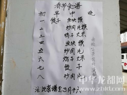 午飯時,老人們井然有序地端著饅頭、大米粥、小酥肉等在餐廳內(nèi)就餐。兩個剛吃過飯的老人仔細(xì)查看貼在食堂門口的《春節(jié)食譜》,路過的一位老太太開玩笑說他們吃著碗里看著鍋里。李學(xué)告訴記者:“從正月初一到正月十五,敬老院的菜譜葷素搭配,每日三餐不重樣。5名炊事員一門心思想讓老人吃得香、吃得鮮、吃得好。”同時,記者發(fā)現(xiàn)在敬老院的前排房間前,兩名服務(wù)員正推著餐車一間挨著一間為行動不便的老人們送水、送飯。
