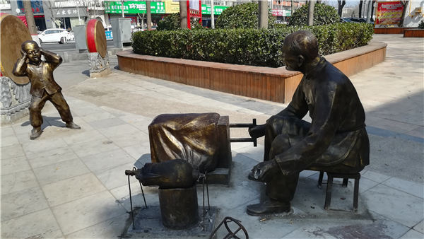這幾天,細心的市民發(fā)現(xiàn),周口市建設(shè)路與八一路口多了4組街頭雕塑。與“高大上”的常見城市雕塑不同,這幾組雕塑非常接地氣,表現(xiàn)的是“爆米花”“打燒餅”“剃頭匠”等市井百態(tài)。不少市民點贊說,這些場景在現(xiàn)代都市里已經(jīng)很少見了,用雕塑的形式呈現(xiàn)出來,讓他們找回了童年記憶。