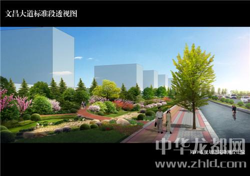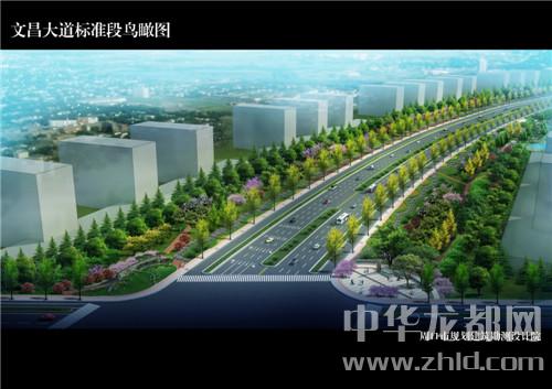 據(jù)東新區(qū)規(guī)劃建設(shè)環(huán)保局副局長楊帥兵介紹,此次施工時(shí)間從3月6日開始,預(yù)計(jì)6月20日結(jié)束。升級(jí)改造后的文昌大道(紅線加綠線)寬度為160米,斷面形式為中央6米綠化帶,中央綠化帶兩側(cè)各為寬度14米的快車道,快車道規(guī)劃為雙向八車道??燔嚨纼蓚?cè)各為寬度3米的機(jī)非分隔帶,機(jī)非分隔帶兩側(cè)為寬度5.5米的慢車道,慢車道兩側(cè)各為寬度4.5米的人行道。在人行道兩側(cè),就是寬度為50米的景觀綠化帶。快車道設(shè)計(jì)速度為50公里/小時(shí),道路設(shè)計(jì)使用年限為15年。