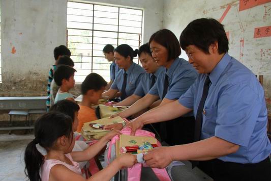 該院2013年成立了“檢察官媽媽”愛心服務(wù)隊(duì),與貧困家庭結(jié)成對子,一對一的幫扶,為貧困的留守兒童解決生活、學(xué)習(xí)上的實(shí)際困難。每年的“六 一”兒童節(jié)、中秋節(jié)、春節(jié)期間慰問貧困兒童,給他們帶去學(xué)習(xí)用具、衣物為他們表演自編自演的節(jié)目。女檢察官們用女性特有的細(xì)心、耐心和愛心,不但在物質(zhì)上給予幫助,在心靈上給予關(guān)懷,讓他們在陽光下健康快樂的成長。