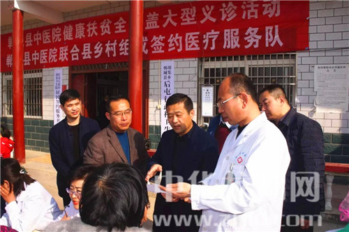 中華龍都網(wǎng)訊(周口報(bào)業(yè)全媒體記者徐松 通訊員張娟 張洋)3月13日,隨著氣溫的回升,各類疾病也逐漸高發(fā),為了讓廣大群眾了解更多的春季疾病防治知識(shí),對(duì)自己的身體狀況有更深入的了解,鄲城縣中醫(yī)院按照縣委、縣政府健康扶貧、醫(yī)療扶貧工作任務(wù)的部署要求,在副院長(zhǎng)王海超的帶領(lǐng)下,組織腦病科、心病科、眼科、呼吸內(nèi)科、疼痛科、糖尿病科共計(jì)22名醫(yī)務(wù)人員與胡集鄉(xiāng)衛(wèi)生院醫(yī)務(wù)人員、后屯行政村鄉(xiāng)村醫(yī)生聯(lián)合組成健康扶貧、簽約醫(yī)療服務(wù)隊(duì),開展健康扶貧、簽約服務(wù)活動(dòng)。