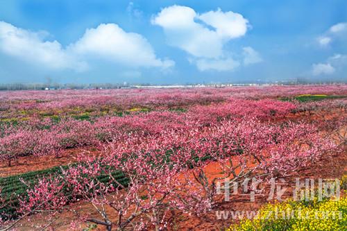 潁河、沙河、賈魯河三條主干河流貫穿西華全境,甘甜的潁河水滋潤了黃橋鄉(xiāng)潁河兩岸萬畝桃園,每年3月底至4月上旬,潁河兩岸桃花盛開,與樹下金燦燦的油菜花、綠油油的麥苗相映成畫,紅、黃、綠構成了五彩斑斕的人間仙景。置身其中,花香沁人心脾,色彩絢麗奪目,景色美不勝收,猶如身處陶淵明筆下的“世外桃源”。
