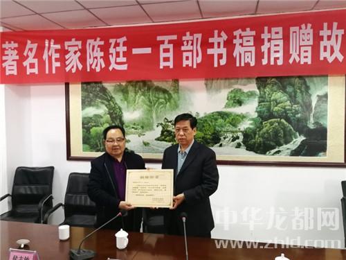 中華龍都網(wǎng)訊(周口報(bào)業(yè)全媒體記者 李瑞才 通訊員 楊光宏 文圖)4月1日上午,鹿邑籍中國(guó)著名傳記作家陳廷一百部書稿捐贈(zèng)故里交接儀式,在老子故里鹿邑縣委黨校二樓會(huì)議室舉行。