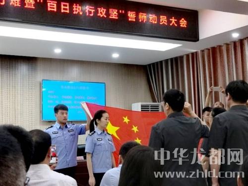 會上,黨組成員、政治部主任邵士明同志宣布了《川匯區(qū)人民法院開展決勝基本解決執(zhí)行難暨“百日執(zhí)行攻堅”實施方案》。執(zhí)行警務(wù)局孫現(xiàn)新局長和各執(zhí)行組組長分別遞交軍令狀,并作表態(tài)發(fā)言。全體執(zhí)行警務(wù)局干警就決勝基本解決執(zhí)行難暨“百日執(zhí)行攻堅”戰(zhàn)向國旗進行了宣誓。