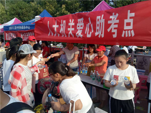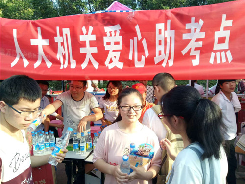 在“人大機關(guān)愛心助考點”,縣人大常委會副主任竇勝利說“授人玫瑰,手留余香。雖然我們沒有力量改變每一位考生的命運,但我們愿意通過點滴的善舉,溫暖每一位考生的心靈、傳遞愛的火種,同時向默默付出的考生家長及考場執(zhí)勤工作人員致意。希望通過我們無私的相助,進一步展示太康文明形象、樹立行業(yè)新風、展現(xiàn)人大風采!”