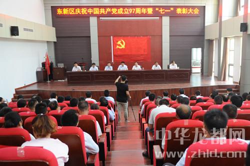 本報訊 (記者 張勁松 通訊員 王艷霞 文/圖) 6月22日,東新區(qū)召開慶祝中國共產(chǎn)黨成立97周年暨表彰先進大會(如右圖)。東新區(qū)黨工委書記閆立超出席會議并講話,東新區(qū)全體班子成員在主席臺就座。區(qū)直機關(guān)全體科級干部,各鄉(xiāng)(辦)書記、副書記、組織委員和組織干事,基層行政村(社區(qū))黨支部書記、2018年新黨員代表以及受到表彰的先進基層黨組織負責人、優(yōu)秀黨務(wù)工作者、優(yōu)秀基層黨支部書記和優(yōu)秀共產(chǎn)黨員等共計170余人參加會議。會議由東新區(qū)管委會主任張建黨主持。
