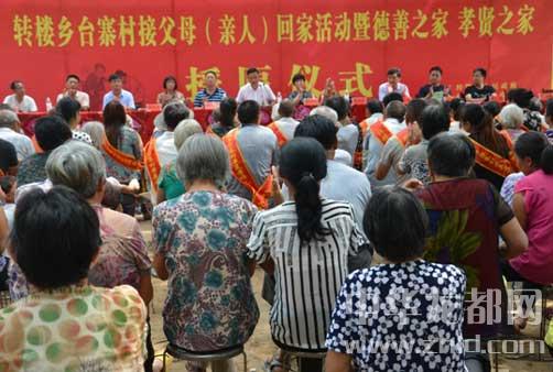 中華龍都網(wǎng)訊(周口報業(yè)全媒體記者 馬治衛(wèi) 通訊員 徐偉)太康縣轉樓鄉(xiāng)臺寨村接父母(親人)回家活動暨德善之家孝賢之家授匾儀式于7月6日在臺寨村村北小樹林舉行。