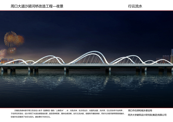 今后一個時期,結(jié)合水系的綜合治理,我市還將陸續(xù)開工建設(shè)數(shù)十座橋梁,并且秉承一橋一風(fēng)格的設(shè)計(jì)特色,展示出每座橋梁的文化內(nèi)涵,通過幾年的努力,把周口中心城區(qū)打造成百座橋梁薈萃、風(fēng)格各異、特色鮮明的橋梁博物館。