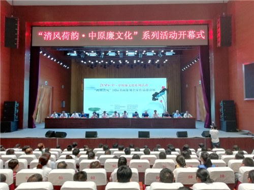 7月24日上午,“清風(fēng)荷韻·中原廉文化”書畫篆刻名家作品展暨國家治理名家大講堂等系列活動在淮陽縣舉行。省紀委監(jiān)察委宣傳部長袁勇、省社科院黨委副書記周立、河南日報報業(yè)集團大河網(wǎng)總編輯孟磊、中央黨校《學(xué)習(xí)時報》副總編輯楊英杰及淮陽縣委書記馬明超、縣長王毅等出席?;顒佑墒形N⒓o委書記、監(jiān)察委主任劉孟連主持。