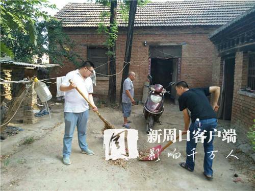 如果環(huán)境衛(wèi)生保持不好,村民的院落就成了滋生蚊蟲的“溫床”。24日早上,大家再一次來到張龐村,宣傳扶貧攻堅(jiān)、“六村共建”等政策,動手幫群眾打掃院落衛(wèi)生,趁天好幫村民曬糧食。副部長宋斌在走訪時聽說貧困戶劉金才近日肺病復(fù)發(fā),呼吸困難,“心里上不來氣兒”,趕緊撥打“120”,聯(lián)系鎮(zhèn)衛(wèi)生院醫(yī)生接診,并和駐村第一書記霍輝、駐村隊(duì)員李富軍、幫扶隊(duì)員張志華、郭威自掏腰包,湊了500塊錢交到劉金才老伴手里,解了燃眉之急。